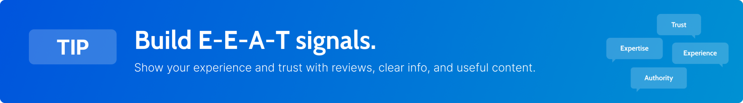 AI values who speaks over just what’s said. Include short author bios, highlight your experience through examples or case studies, and share a little about your company or how you work. Linking to other helpful content you’ve created also reinforces your expertise.